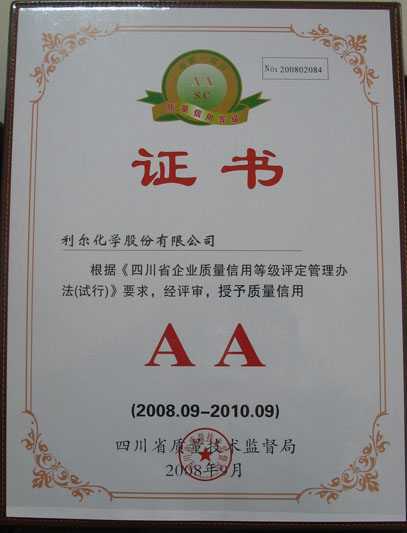 2008年9月,利爾化學(xué)股份有限公司被四川省質(zhì)量技術(shù)監(jiān)督局評為“二〇〇八年度四川省質(zhì)量管理先進(jìn)企業(yè)...