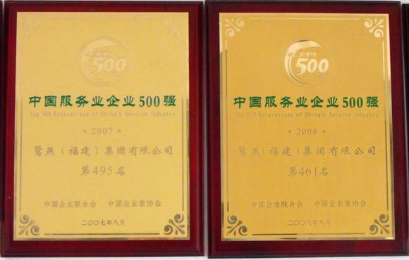 鷺燕集團(tuán)又傳捷報(bào),在榮獲了“市百強(qiáng)企業(yè)”、“市重點(diǎn)民營企業(yè)”、“湖里區(qū)十佳文明企業(yè)”之后,再次榮獲“中國服務(wù)企業(yè)500強(qiáng)”稱號(hào),這已是鷺燕集團(tuán)連續(xù)三年獲此殊榮。