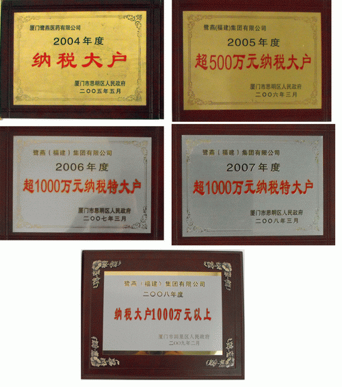 2009年3月3日,廈門市湖里區(qū)人民政府召開“2008年度湖里區(qū)納稅先進(jìn)企業(yè)表彰會”,鷺燕集團(tuán)再次榮獲“納稅超千萬大戶”榮譽(yù)稱號,這是鷺燕集團(tuán)自2006年以來連續(xù)三年成為“納稅超千萬大戶”。