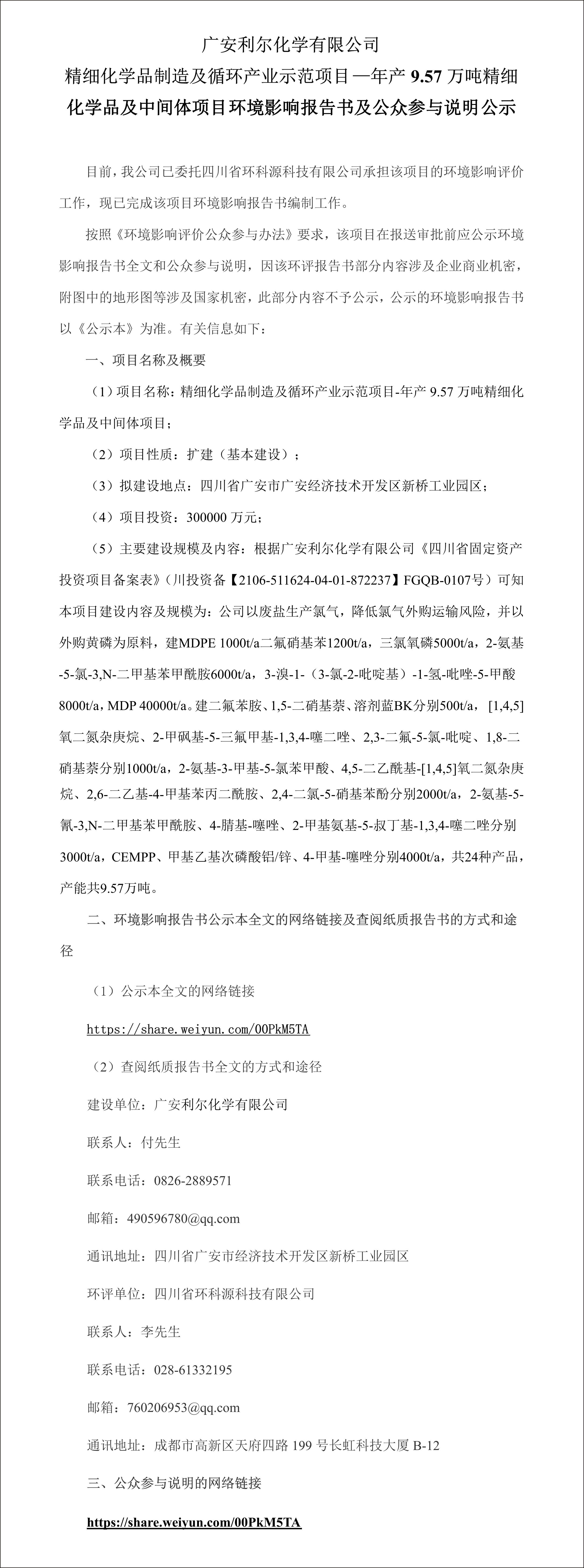 利爾化學(xué)股份有限公司擬對“2022年度國內(nèi)段公路運輸物流服務(wù)”項目進行國內(nèi)公開招標(biāo),茲邀請符合本次招...