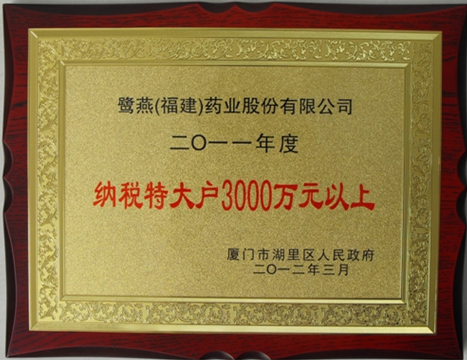近日,廈門市湖里區(qū)隆重召開2011年度納稅先進(jìn)企業(yè)表彰大會,鷺燕(福建)藥業(yè)股份有限公司以超3000萬的突出納稅貢獻(xiàn)榮獲“2011年度廈門湖里區(qū)納稅特大戶”稱號。